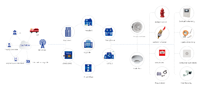 Through self-developed NB-IoT pressure sensor, fire hydrant sensor and smoke alarm,Intelligent fire control connects to fire control units through wireless network, realizing all-round deployment, and effectively solving the problem of dead angle of fire control. It has been widely used in three small places, elderly people living alone, hotels and places with messy personnel.